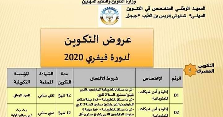 تخصصات دورة فيفري 2020 المعهد الوطني المتخصص في التكوين المهني الحجار Facebook