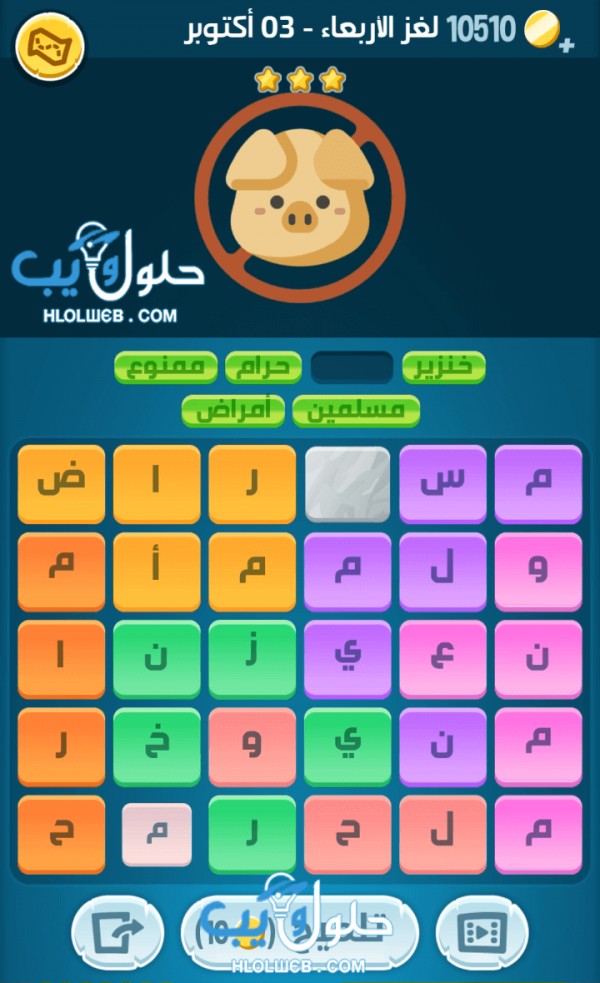 حل كلمات كراش لغز الاربعاء 3 اكتوبر اللغز اليومي حلول ويب