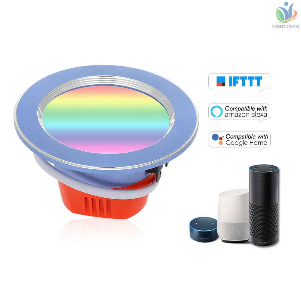 F D Smart 2 4g Wifi Led Downlight 7w Intelligent Recessed Ceiling Lamp Dimmable Rgb C W Multicolored App Remote Voice Control Timer Switch For Kitchen Bathroom Compatible With Tmall Genie For Amazon Alexa Google Assistant